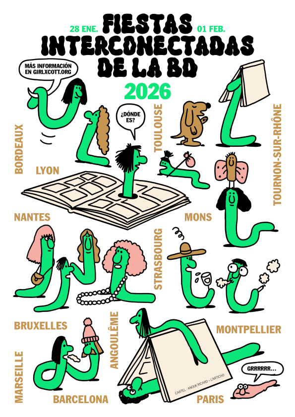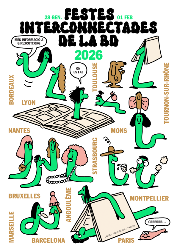 | Dimecres 28, 18.45 h Fatbottom. Xerrada Marta Cartu i Emma Casadevall. “Antropologia en vinyetes. Poder, memòria i còmic” Dijous 29, 19 h Fatbottom. Serato Animato. Projeccions de curtmetratges d’underground animation d’Adina Enache Dissabte 31, de les 11 a les 20 h (provisional) Fatbottom. El Passillu, festivalet d’autoedició i fanzines A les 12.30 h (provisional). Fatbottom. Taula rodona amb Mar Mascaró, Ana Buquerin i María Ramos A les 18.30 h. Buffet Lliure. Exposició de DeiffMG. «1.000 cafès. Expo». Tattoos & pastissos i cafè Mercredi 28 janvier 2026 18 h 45 à Fatbottom, rencontre avec Marta Cartu et Emma Casadevall. Titre de la rencontre : « Anthropologie en cases. Pouvoir, mémoire et bande dessinée » Jeudi 29 janvier 2026 19 h à Fatbottom, Projections de courts-métrages d’animation underground d’Adina Enache + rencontre Samedi 31 janvier 2026, de 11 h à 20 h Stands Fanzines à Fatbottom. Le petit festival d’auto-édition et fanzines À 12 h 30 à Fatbottom, table ronde avec Mar Mascaró, Ana Buquerin et María Ramos À 18 h 30 à Buffet Lliure (un autre lieu espace galerie dans Barcelone ), Exposition de DeiffMG : « 1000 cafés. Expo ». Tatouages, patisseries et café |